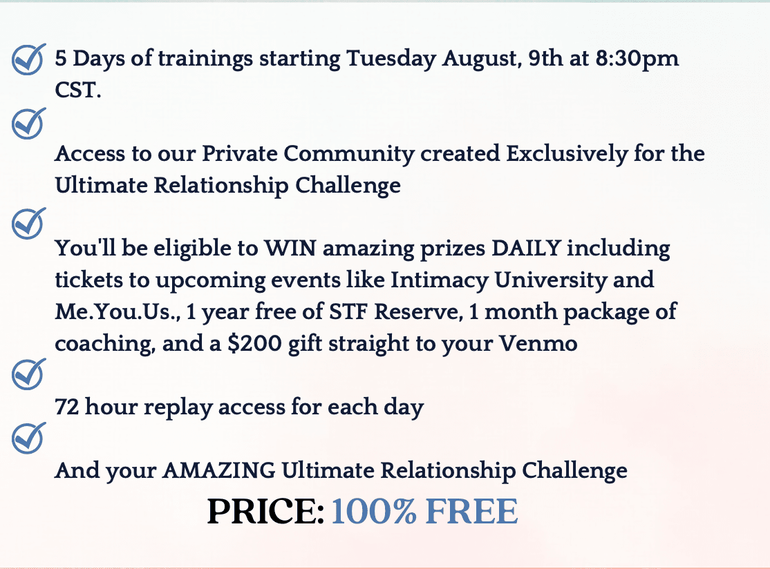 Staring on Day 2 of the challenge, Josh & Dr. Britt will pick one person to personally connect with to help you SHIFT your relationship.